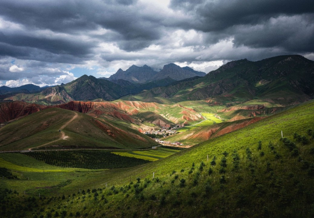 青海的卓尔山在4000米以上的高海拔上,依旧保持着那份原始的美丽。这里的丹霞地貌与连绵起伏的祁连山脉相互映衬,形成了“东方小瑞士”的美誉。每年6月到7月间,山下的油菜花海如同金色的海洋般蔓延开来,而山上裸露出来的赤红砂岩则与周围的林海构成了一幅色彩斑斓的画面。此外,孟达天池宛如一颗镶嵌在翠岭间的绿宝石,其碧绿色的湖水倒映着四周郁郁葱葱的植被,偶有鸟儿飞过,增添了几分宁静与祥和。